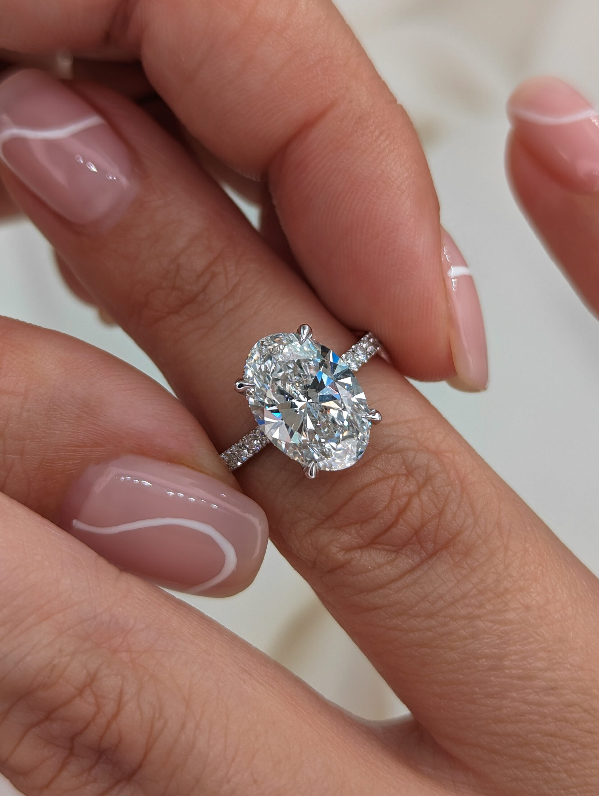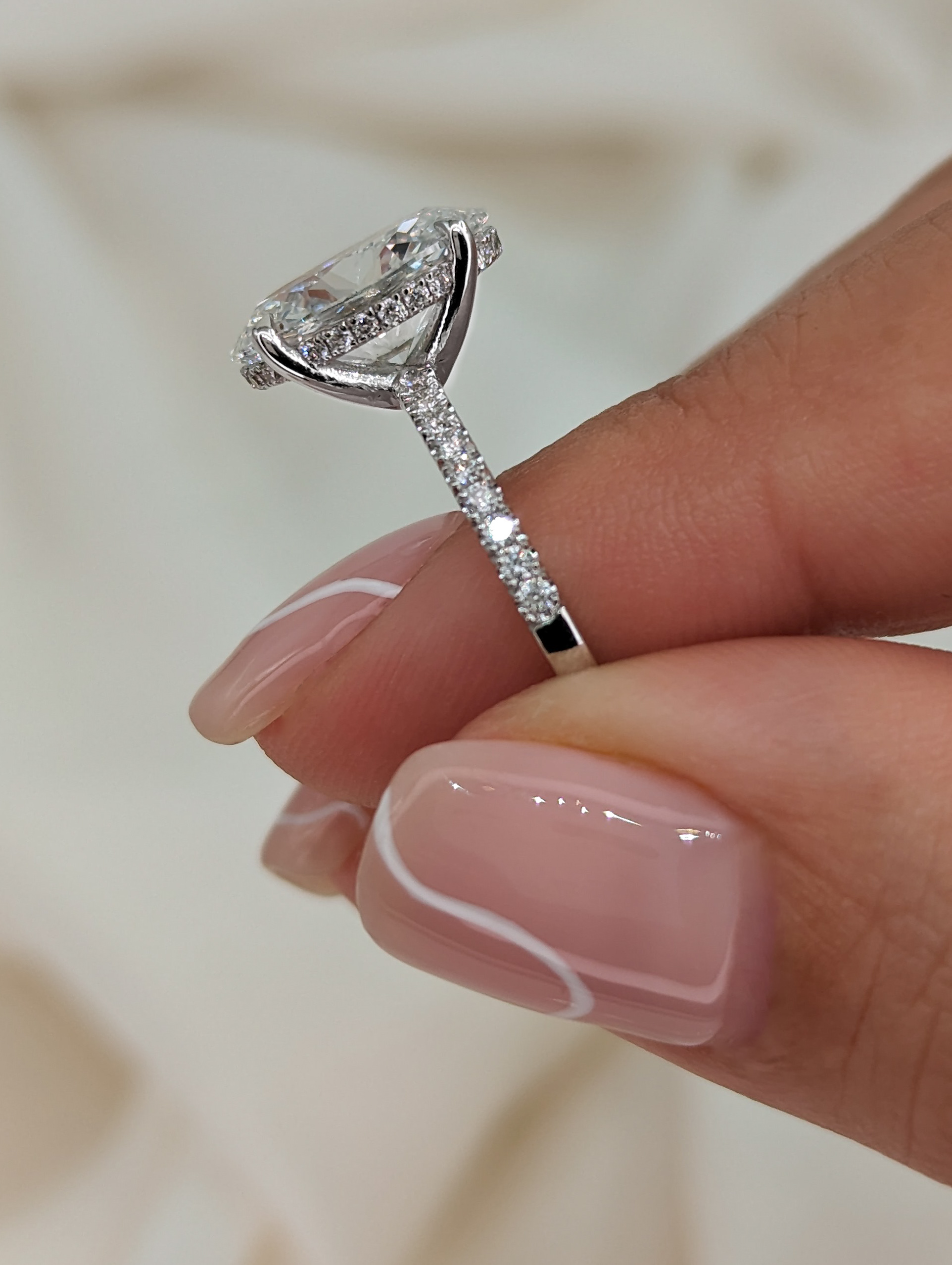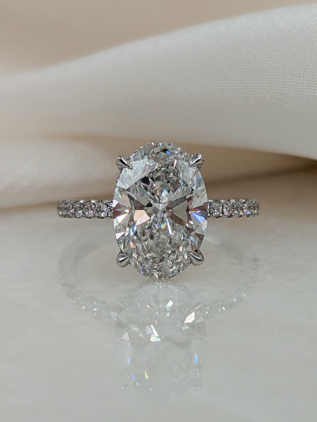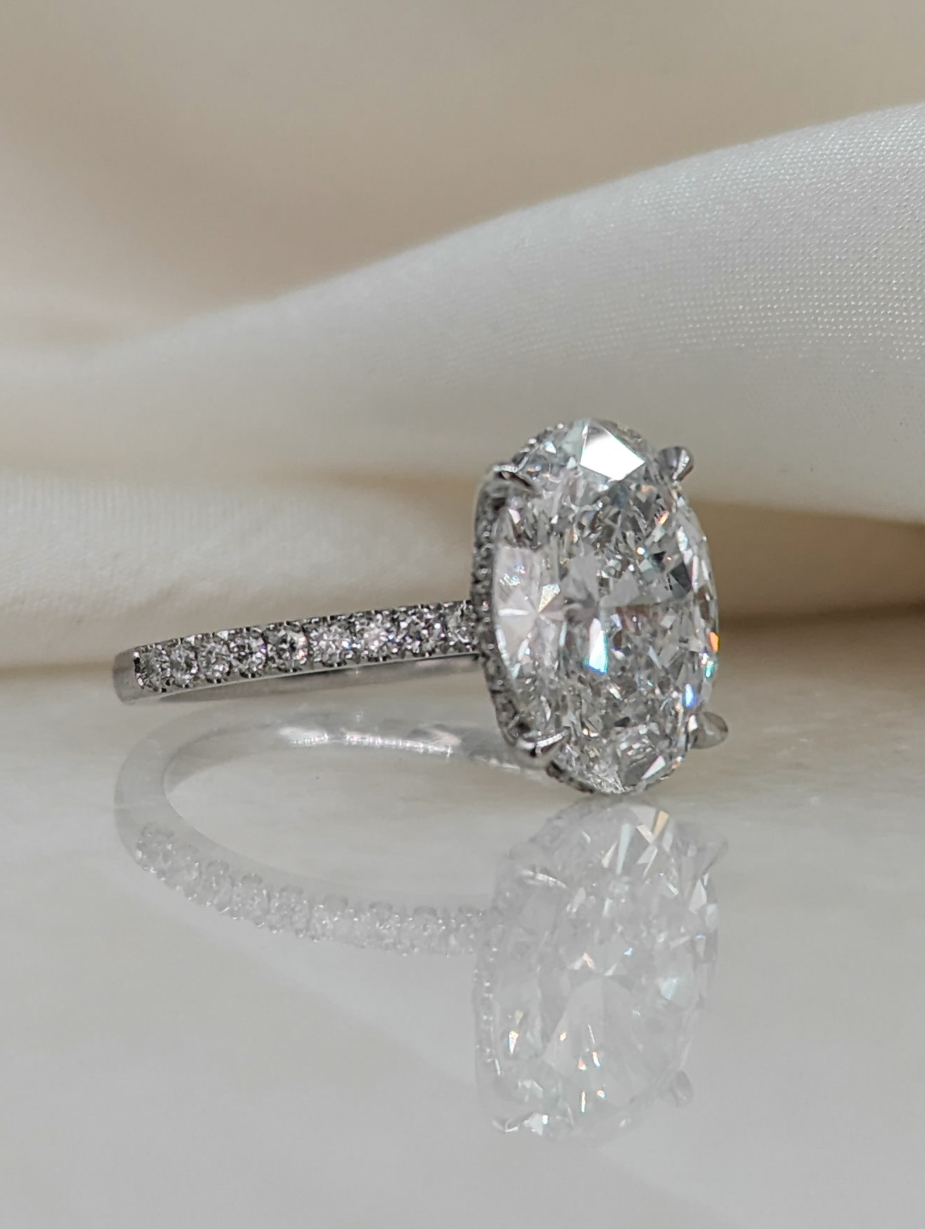 Alexandra Ring – 3.20 Carat Oval Diamond Engagement Ring with Pave and Hidden Halo