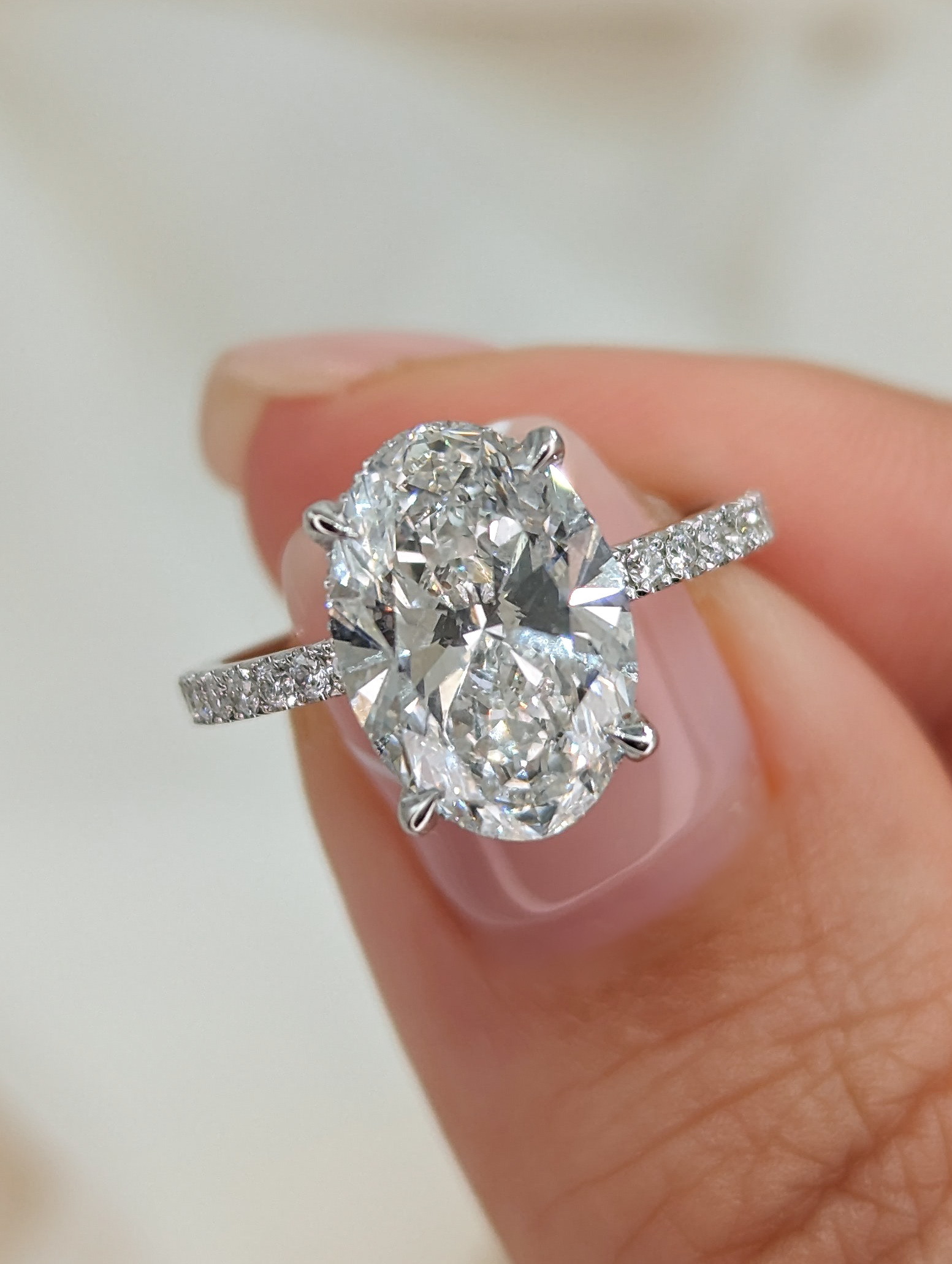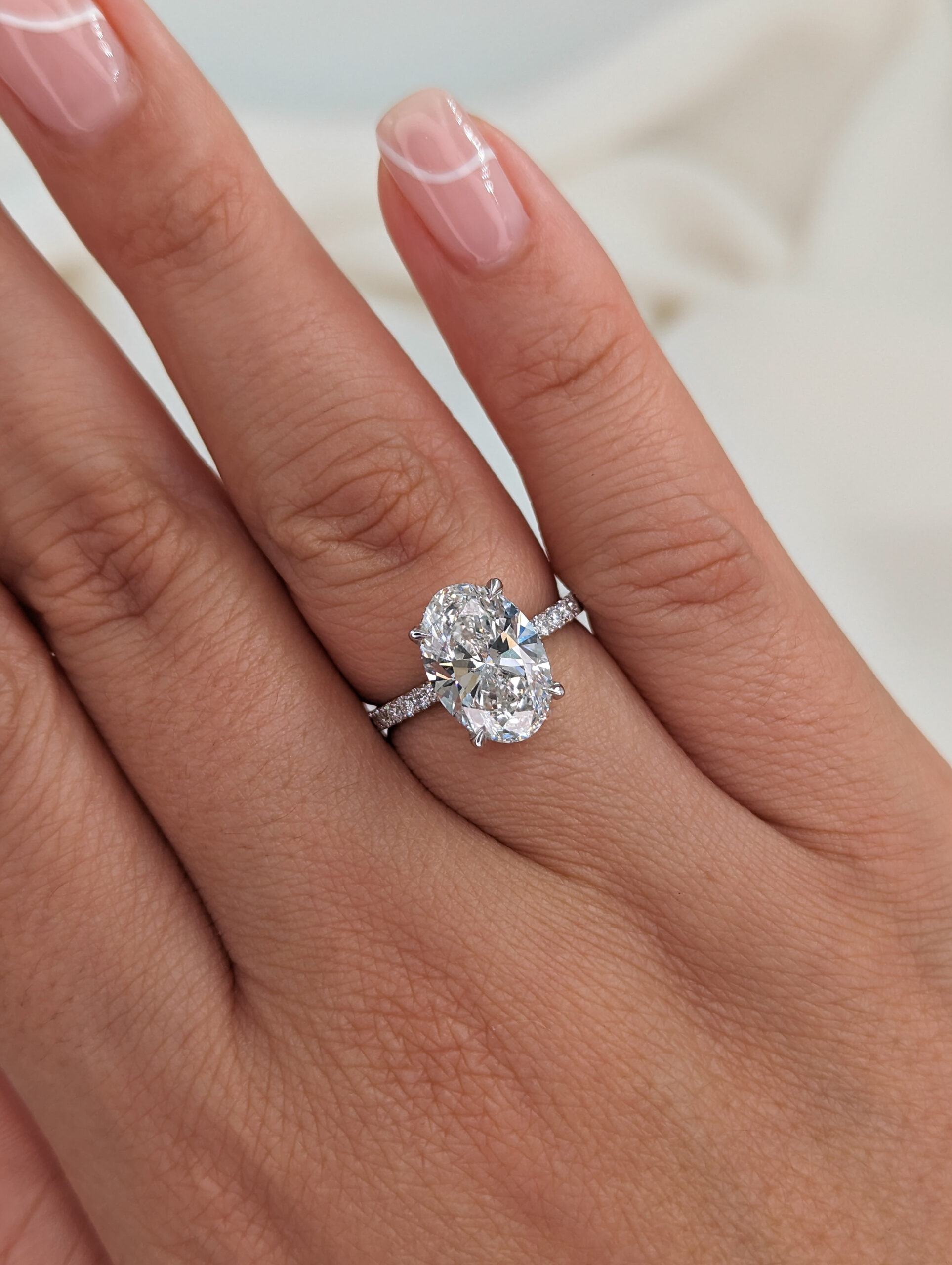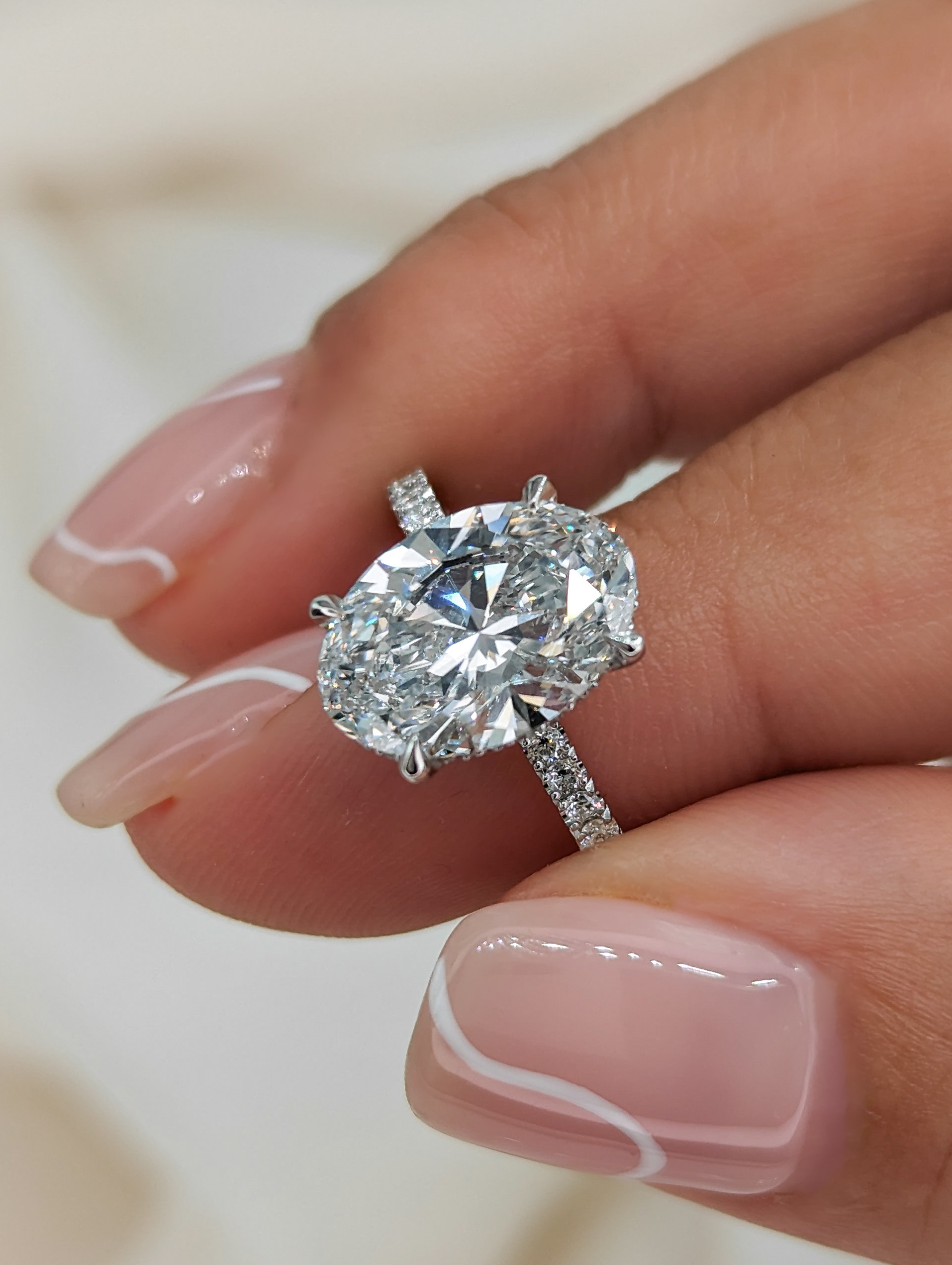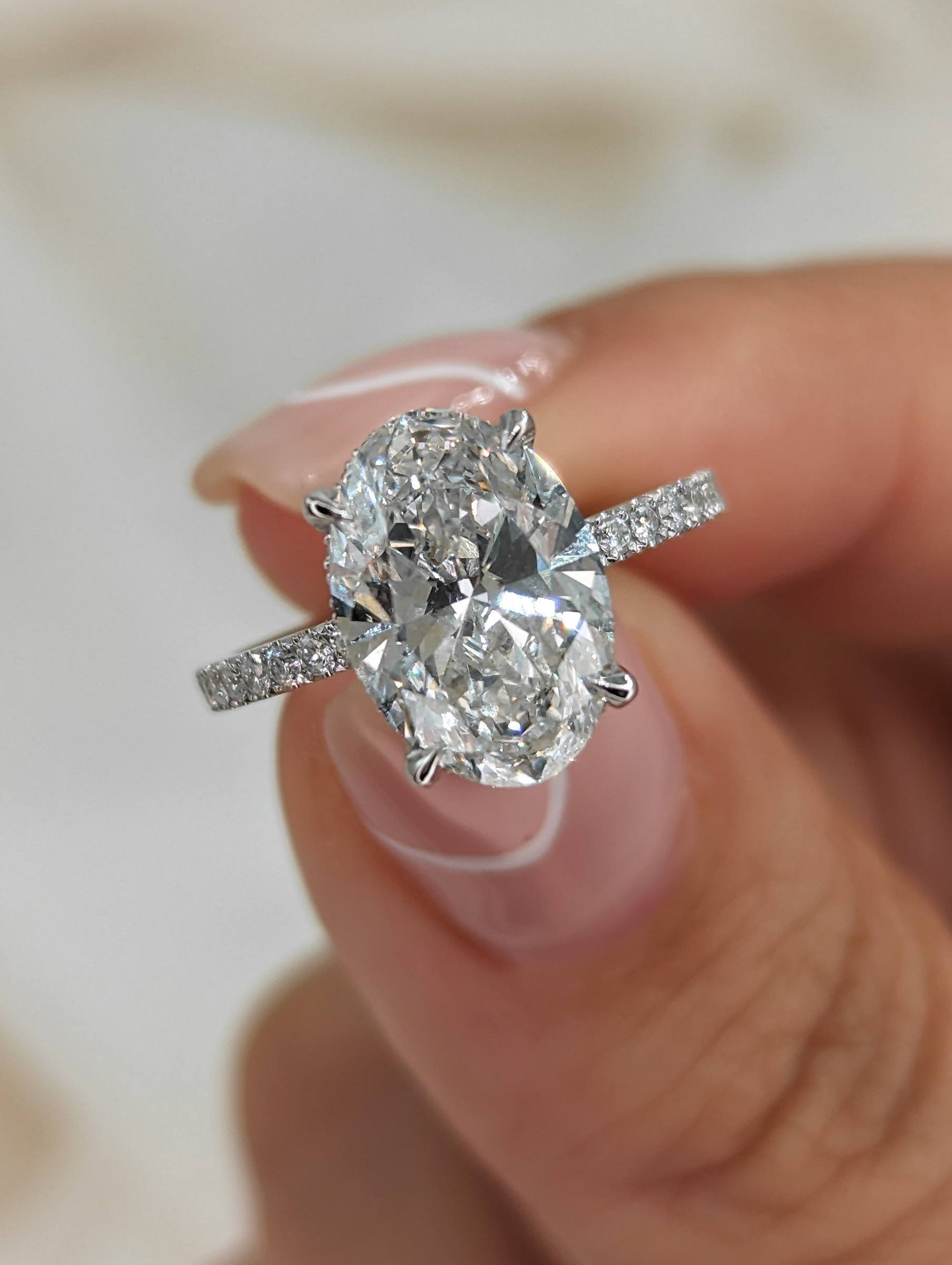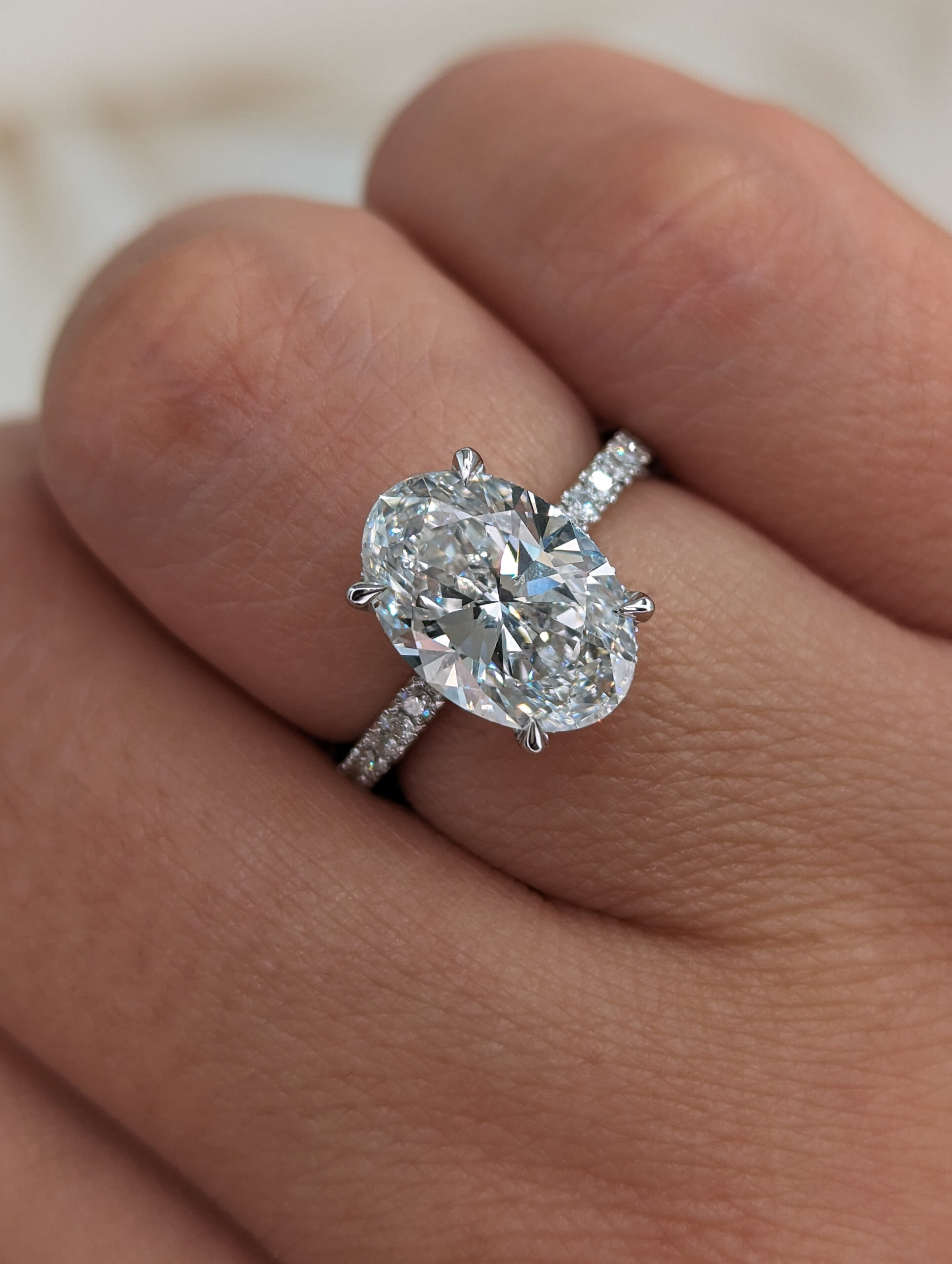 Alexandra Ring – 3.20 Carat Oval Diamond Engagement Ring with Pave and Hidden Halo